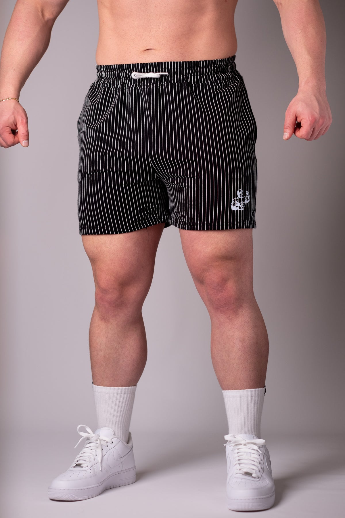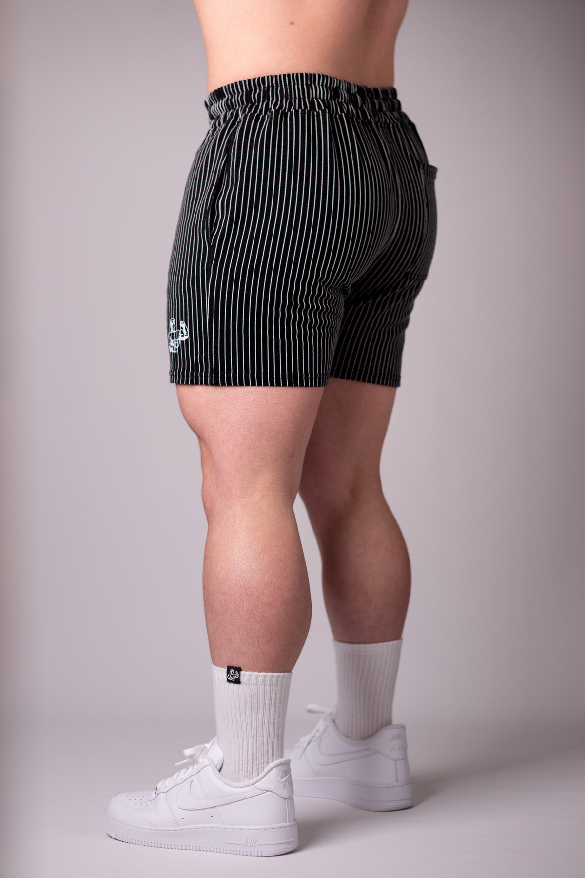 Throwback pin-striped design meets modern day comfort. Inspired by the 70s & 80s golden era of bodybuilding. Our world famous old school gym shorts are worn by athletes all around the world. You'll standout in every single gym you bless with your presence.