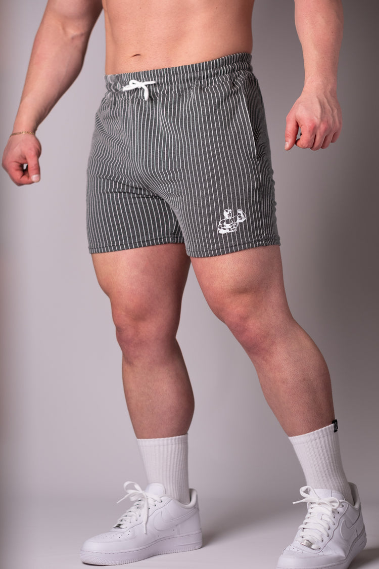 Throwback pin-striped design meets modern day comfort. Inspired by the 70s & 80s golden era of bodybuilding. Our world famous old school gym shorts are worn by athletes all around the world. You'll standout in every single gym you bless with your presence.