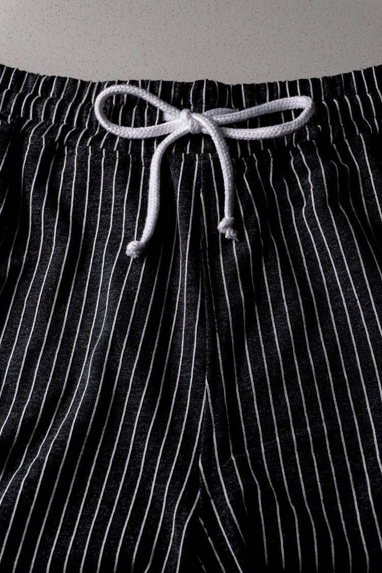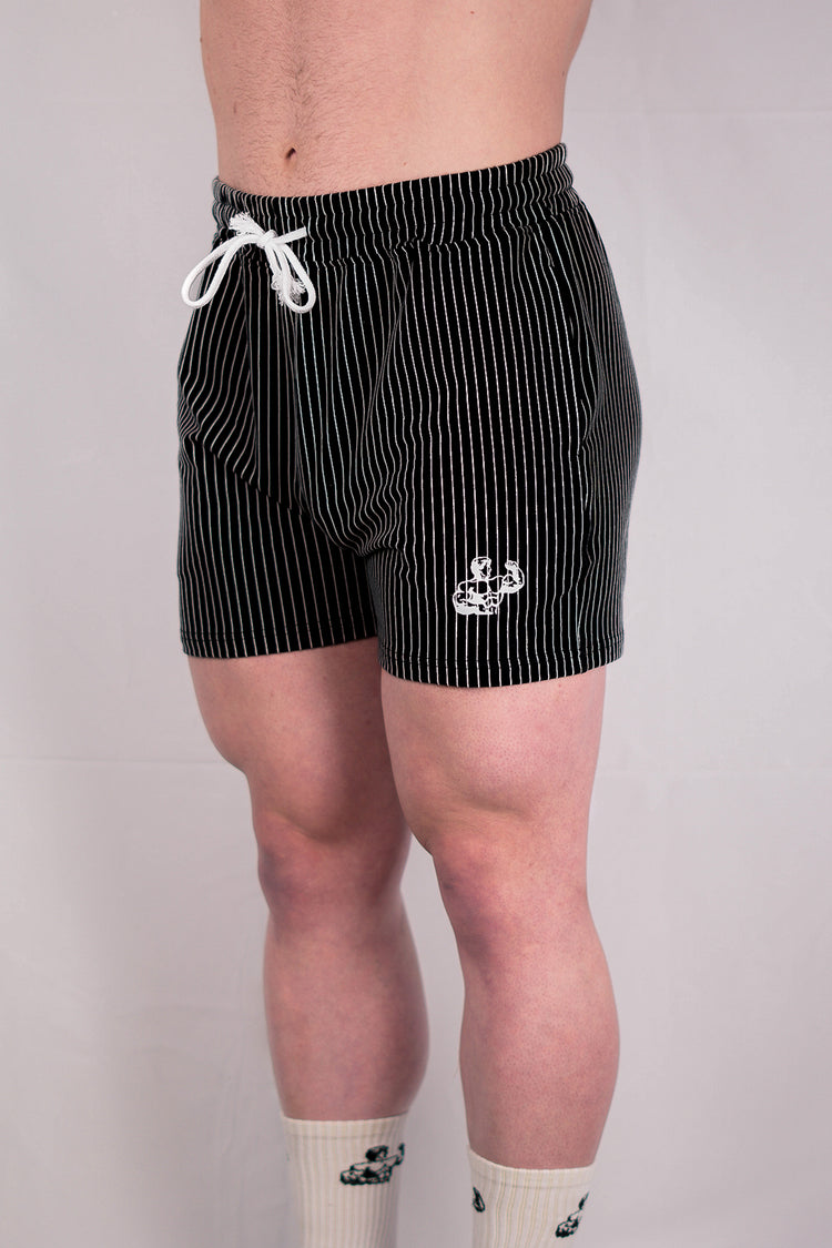 BLACK PIN-STRIPED GYM SHORTS