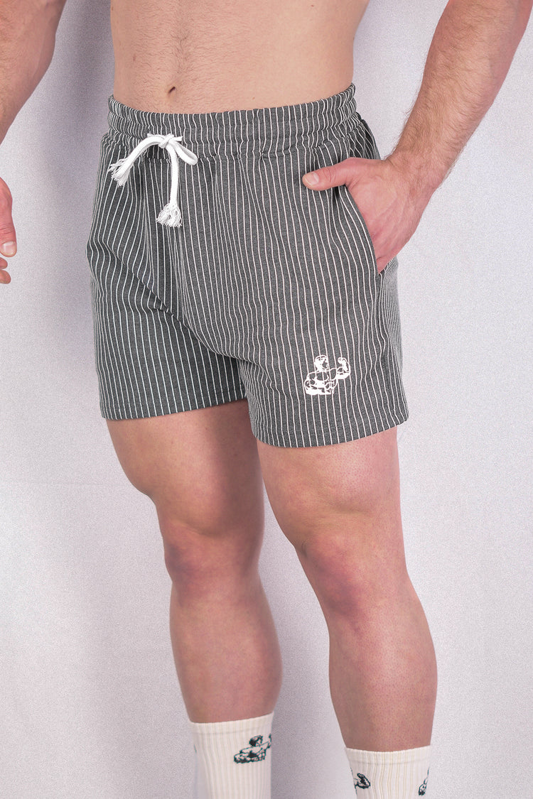 Throwback pin-striped design meets modern day comfort. Inspired by the 70s & 80s golden era of bodybuilding. Our world famous old school gym shorts are worn by athletes all around the world. You'll standout in every single gym you bless with your presence.
