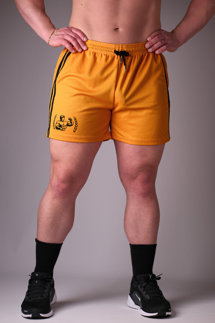 The gym shorts you wear say a lot about who you are. Most people stick to the normal, boring, and safe options. We don't believe in that. We believe in the Golden Era of gym culture. Embracing our legs, shape, the beauty of our physiques. Physical fitness means excellence, you become excellent when you wear these shorts.